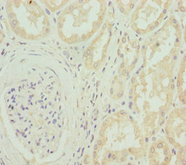 Immunohistochemistry of paraffin-embedded human kidney tissue using CSB-PA004411DSR1HU at dilution of 1:100