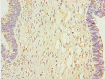 Immunohistochemistry of paraffin-embedded human ovarian cancer using CSB-PA614394ESR2HU at dilution of 1:100