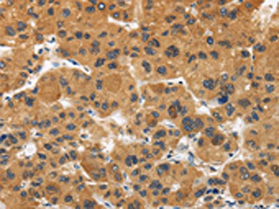 The image is immunohistochemistry of paraffin-embedded Human liver cancer tissue using CSB-PA984693(CALU Antibody) at dilution 1/40. (Original magnification: ×200)