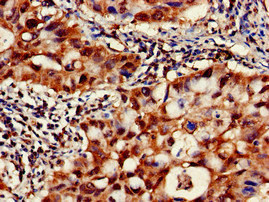 Immunohistochemistry of paraffin-embedded human lung cancer using CSB-PA004490EA01HU at dilution of 1:100