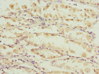 Immunohistochemistry of paraffin-embedded human gastric cancer using CSB-PA004503ESR1HU at dilution of 1:100
