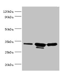 Observed band size: 32, 31 kDa -