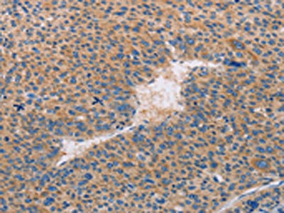 The image on the left is immunohistochemistry of paraffin-embedded Human liver cancer tissue using CSB-PA209503(CASP10 Antibody) at dilution 1/30, on the right is treated with fusion protein. (Original magnification: ×200)