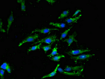 Immunofluorescent analysis of Hela cells using CSB-PA747641LA01HU at dilution of 1:100 and Alexa Fluor 488-congugated AffiniPure Goat Anti-Rabbit IgG(H+L)