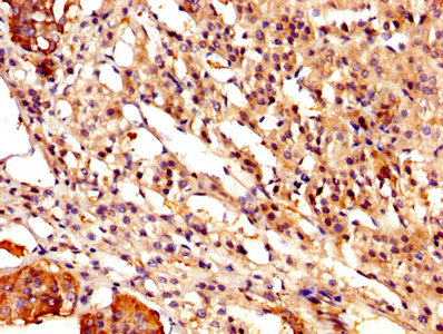 IHC image of CSB-PA004561YA01HU diluted at 1:500 and staining in paraffin-embedded human adrenal gland tissue performed on a Leica BondTM system. After dewaxing and hydration, antigen retrieval was mediated by high pressure in a citrate buffer (pH 6.0). Section was blocked with 10% normal goat serum 30min at RT. Then primary antibody (1% BSA) was incubated at 4°C overnight. The primary is detected by a biotinylated secondary antibody and visualized using an HRP conjugated SP system.
