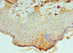 Immunohistochemistry of paraffin-embedded human skin tissue using CSB-PA864026ESR2HU at dilution of 1:100