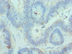 Immunohistochemistry of paraffin-embedded human colon cancer using CSB-PA864026ESR2HU at dilution of 1:100
