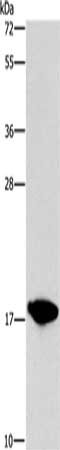 Gel: 15%SDS-PAGE, Lysate: 40 μg, Lane: HepG2 cells, Primary antibody: CSB-PA169235(CCL16 Antibody) at dilution 1/760, Secondary antibody: Goat anti rabbit IgG at 1/8000 dilution, Exposure time: 3 seconds