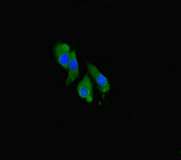 Immunofluorescent analysis of Hela cells using CSB-PA004831LA01HU at dilution of 1:100 and Alexa Fluor 488-congugated AffiniPure Goat Anti-Rabbit IgG(H+L)