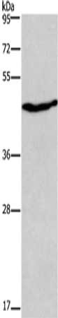 Gel: 8%SDS-PAGE,Lysate: 40 μg,,Primary antibody: CSB-PA091770(CCR8 Antibody) at dilution 1/350 dilution,Secondary antibody: Goat anti rabbit IgG at 1/8000 dilution,Exposure time: 20 seconds