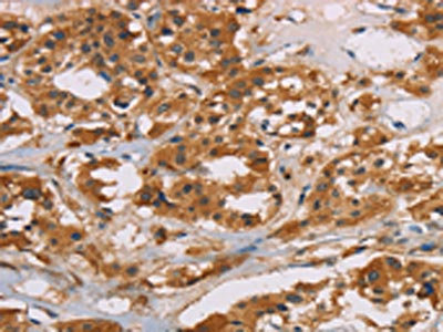 The image on the left is immunohistochemistry of paraffin-embedded Human thyroid cancer tissue using CSB-PA576542(CD22 Antibody) at dilution 1/50, on the right is treated with fusion protein. (Original magnification: ×200)