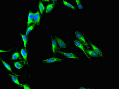 Immunofluorescent analysis of Hela cells using CSB-PA004928LA01HU at dilution of 1:100 and Alexa Fluor 488-congugated AffiniPure Goat Anti-Rabbit IgG(H+L)