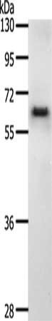 Gel: 10%SDS-PAGE, Lysate: 40 μg, Lane: K562 cells, Primary antibody: CSB-PA245457(CDC6 Antibody) at dilution 1/200, Secondary antibody: Goat anti rabbit IgG at 1/8000 dilution, Exposure time: 2 minutes