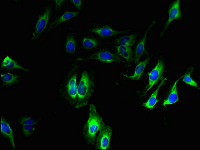Immunofluorescent analysis of Hela cells using CSB-PA05204A0Rb at dilution of 1:100 and Alexa Fluor 488-congugated AffiniPure Goat Anti-Rabbit IgG(H+L)