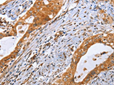 The image on the left is immunohistochemistry of paraffin-embedded Human liver cancer tissue using CSB-PA945984(CDK19 Antibody) at dilution 1/70, on the right is treated with synthetic peptide. (Original magnification: ×200)