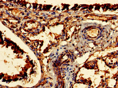Immunohistochemistry of paraffin-embedded human lung tissue using CSB-PA005103LA01HU at dilution of 1:100