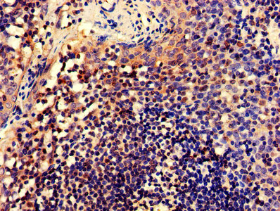 IHC image of CSB-PA006217LA01HU diluted at 1:600 and staining in paraffin-embedded human tonsil tissue performed on a Leica BondTM system. After dewaxing and hydration, antigen retrieval was mediated by high pressure in a citrate buffer (pH 6.0). Section was blocked with 10% normal goat serum 30min at RT. Then primary antibody (1% BSA) was incubated at 4°C overnight. The primary is detected by a biotinylated secondary antibody and visualized using an HRP conjugated SP system.