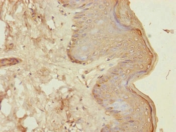 Immunohistochemistry of paraffin-embedded human skin tissue using CSB-PA005214ESR2HU at dilution of 1:100
