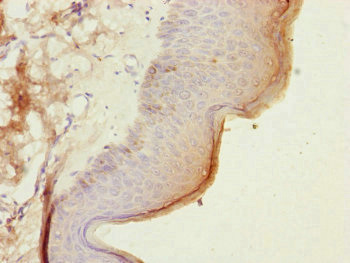 Immunohistochemistry of paraffin-embedded human skin tissue using CSB-PA818266ESR1HU at dilution of 1:100