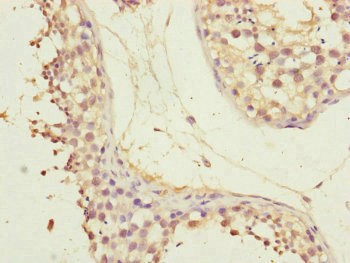 Immunohistochemistry of paraffin-embedded human testis tissue using CSB-PA889176DSR1HU at dilution of 1:100