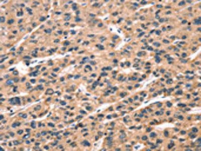 The image on the left is immunohistochemistry of paraffin-embedded Human liver cancer tissue using CSB-PA292680(CGA Antibody) at dilution 1/65, on the right is treated with fusion protein. (Original magnification: ×200)