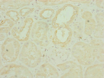 Immunohistochemistry of paraffin-embedded human kidney tissue using CSB-PA873679ESR2HU at dilution of 1:100
