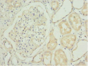 Immunohistochemistry of paraffin-embedded human kidney tissue using CSB-PA874858ESR2HU at dilution of 1:100