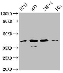Positive WB detected in: U251 whole cell lysate, 293 whole cell lysate, THP-1 whole cell lysate, PC-3 whole cell lysate