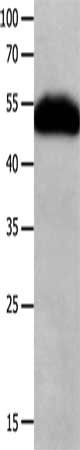 Gel: 10%SDS-PAGE, Lysate: 40 μg, Lane: Human fetal lung tissue, Primary antibody: CSB-PA085715(CHRNA3 Antibody) at dilution 1/600, Secondary antibody: Goat anti rabbit IgG at 1/8000 dilution, Exposure time: 1 minute