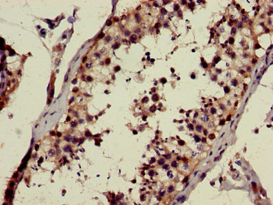 Immunohistochemistry of paraffin-embedded human testis tissue using CSB-PA745332LA01HU at dilution of 1:100