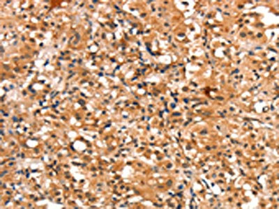 The image on the left is immunohistochemistry of paraffin-embedded Human gastic cancer tissue using CSB-PA974724(CHUK Antibody) at dilution 1/15, on the right is treated with synthetic peptide. (Original magnification: ×200)
