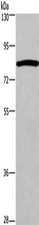 Gel: 6%SDS-PAGE, Lysate: 50 μg, Lane: Hela cells, Primary antibody: CSB-PA974724(CHUK Antibody) at dilution 1/200, Secondary antibody: Goat anti rabbit IgG at 1/8000 dilution, Exposure time: 5 minutes