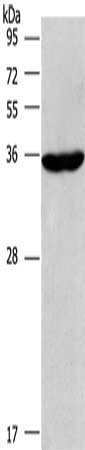 Gel: 6%SDS-PAGE, Lysate: 40 μg, Lane: Raji cells, Primary antibody: CSB-PA102580(CIAPIN1 Antibody) at dilution 1/597, Secondary antibody: Goat anti rabbit IgG at 1/8000 dilution, Exposure time: 2 minutes