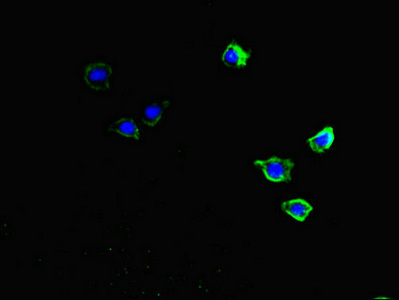 Immunofluorescent analysis of HepG2 cells using CSB-PA809015LA01HU at dilution of 1:100 and Alexa Fluor 488-congugated AffiniPure Goat Anti-Rabbit IgG(H+L)