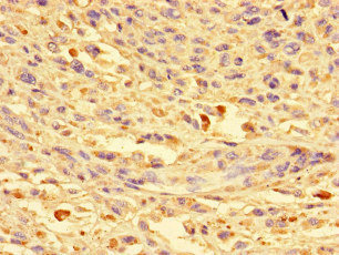 Immunohistochemistry of paraffin-embedded human melanoma using CSB-PA809015LA01HU at dilution of 1:100