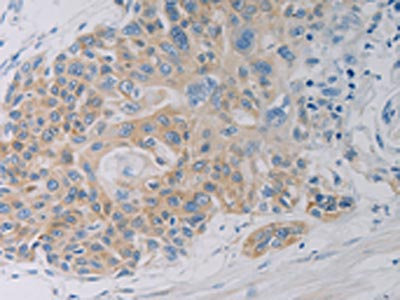 The image on the left is immunohistochemistry of paraffin-embedded Human esophagus cancer tissue using CSB-PA273524(CLEC4C Antibody) at dilution 1/50, on the right is treated with synthetic peptide. (Original magnification: ×200)