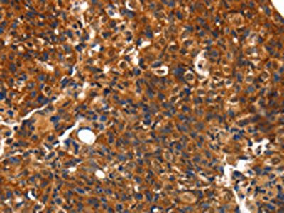 The image on the left is immunohistochemistry of paraffin-embedded Human colon cancer tissue using CSB-PA708217(CMTM3 Antibody) at dilution 1/10, on the right is treated with synthetic peptide. (Original magnification: ×200)