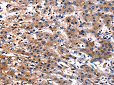 The image on the left is immunohistochemistry of paraffin-embedded Human liver cancer tissue using CSB-PA102646(CNGA2 Antibody) at dilution 1/25, on the right is treated with fusion protein. (Original magnification: ×200)