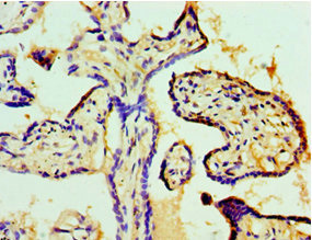 Immunohistochemistry of paraffin-embedded human placenta tissue using CSB-PA005713DSR1HU at dilution of 1:100
