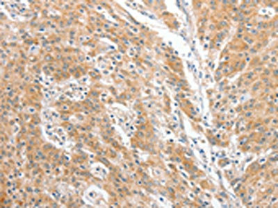 The image on the left is immunohistochemistry of paraffin-embedded Human gastric cancer tissue using CSB-PA785654(COL4A3BP Antibody) at dilution 1/60, on the right is treated with fusion protein. (Original magnification: ×200)