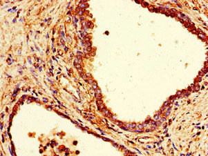 Immunohistochemistry of paraffin-embedded human prostate cancer using CSB-PA03669A0Rb at dilution of 1:100