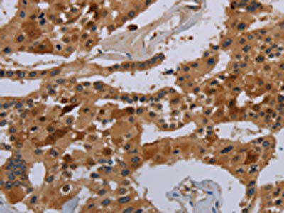 The image on the left is immunohistochemistry of paraffin-embedded Human prostate cancer tissue using CSB-PA203427(COX18 Antibody) at dilution 1/20, on the right is treated with synthetic peptide. (Original magnification: ×200)