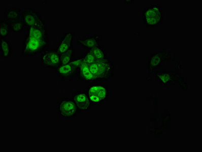 Immunofluorescent analysis of MCF-7 cells using CSB-PA621966LA01HU at dilution of 1:100 and Alexa Fluor 488-congugated AffiniPure Goat Anti-Rabbit IgG(H+L)