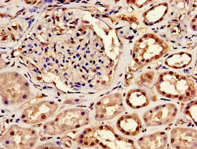 Immunohistochemistry of paraffin-embedded human kidney tissue using CSB-PA621966LA01HU at dilution of 1:100