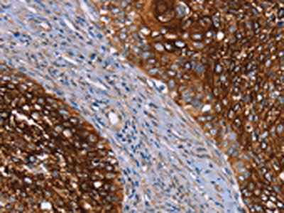 The image on the left is immunohistochemistry of paraffin-embedded Human cervical cancer tissue using CSB-PA257925(CRH Antibody) at dilution 1/20, on the right is treated with synthetic peptide. (Original magnification: ×200)