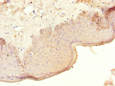 Immunohistochemistry of paraffin-embedded human skin tissue using CSB-PA005965EA01HU at dilution of 1:100