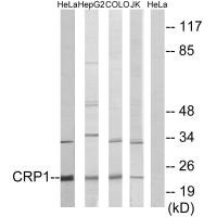 免疫原:Synthesized peptide derived from internal of Human CRP1.