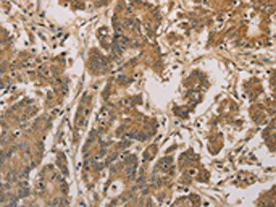 The image on the left is immunohistochemistry of paraffin-embedded Human colon cancer tissue using CSB-PA806953(CXXC5 Antibody) at dilution 1/25, on the right is treated with fusion protein. (Original magnification: ×200)