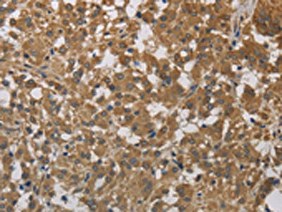 The image on the left is immunohistochemistry of paraffin-embedded Human cervical cancer tissue using CSB-PA232766(CYB5A Antibody) at dilution 1/40, on the right is treated with fusion protein. (Original magnification: ×200)