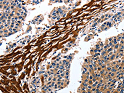 The image on the left is immunohistochemistry of paraffin-embedded Human liver cancer tissue using CSB-PA178836(CYP3A4 Antibody) at dilution 1/15, on the right is treated with fusion protein. (Original magnification: ×200)